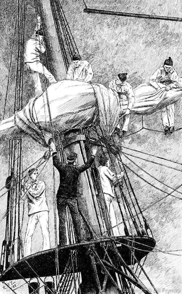 Keywords: engraving "Rufus Fairchild Zogbaum" "Rufus Zogbaum" "Naval Academy" "19th century" Frymire Archive mast rope people person
